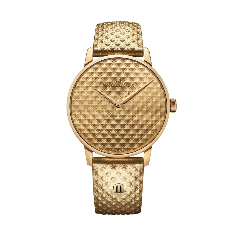 Green is the new black! Mit dieser ELIROS Date 40mm liegen Sie am Puls der Zeit: Das grüne Zifferblatt mit Sonnenschliff wird gefasst von einem roségoldfarben beschichteten Gehäuse, dessen Farbe auch von den Zeigern und Stundenmarkern wieder aufgenommen wird. Das Lederband in passendem Grün mit beigen Abnähern rundet den frischen, modernen Look der Uhr ab. Dank der Datumsanzeige auf 3 Uhr und des zuverlässigen Quarzwerks ist auch kompromisslose Funktionalität gegeben.