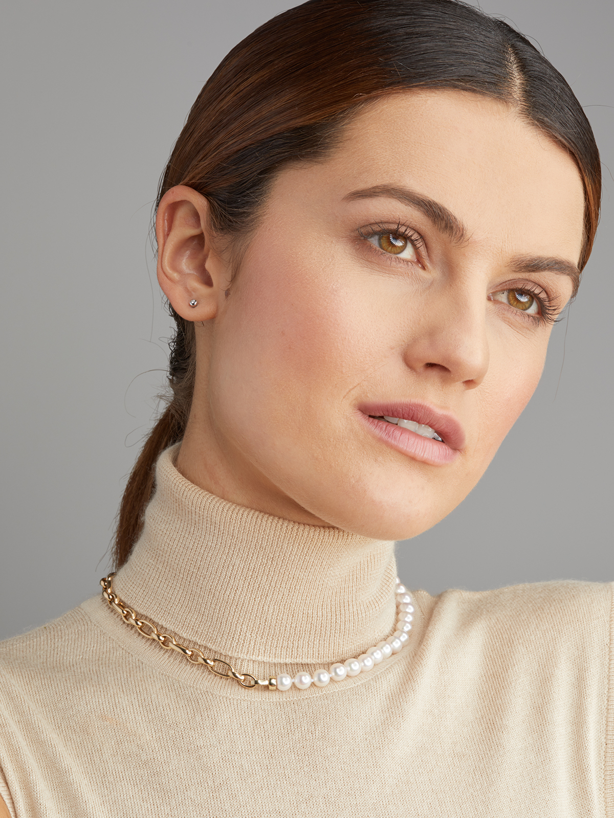 Yana Nesper 3 in 1 Perlenkette mit Akoyaperlen und Gelbgoldgliedern Balthasar