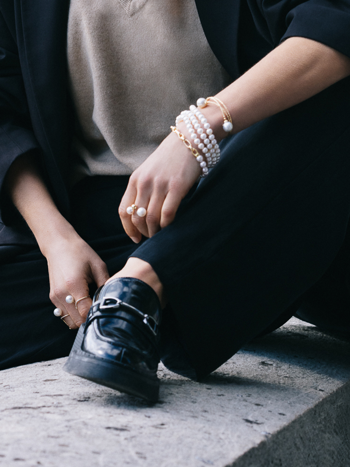 Yana Nesper Akoya Perlenarmband mit luftigen Goldgliedern Balthasar