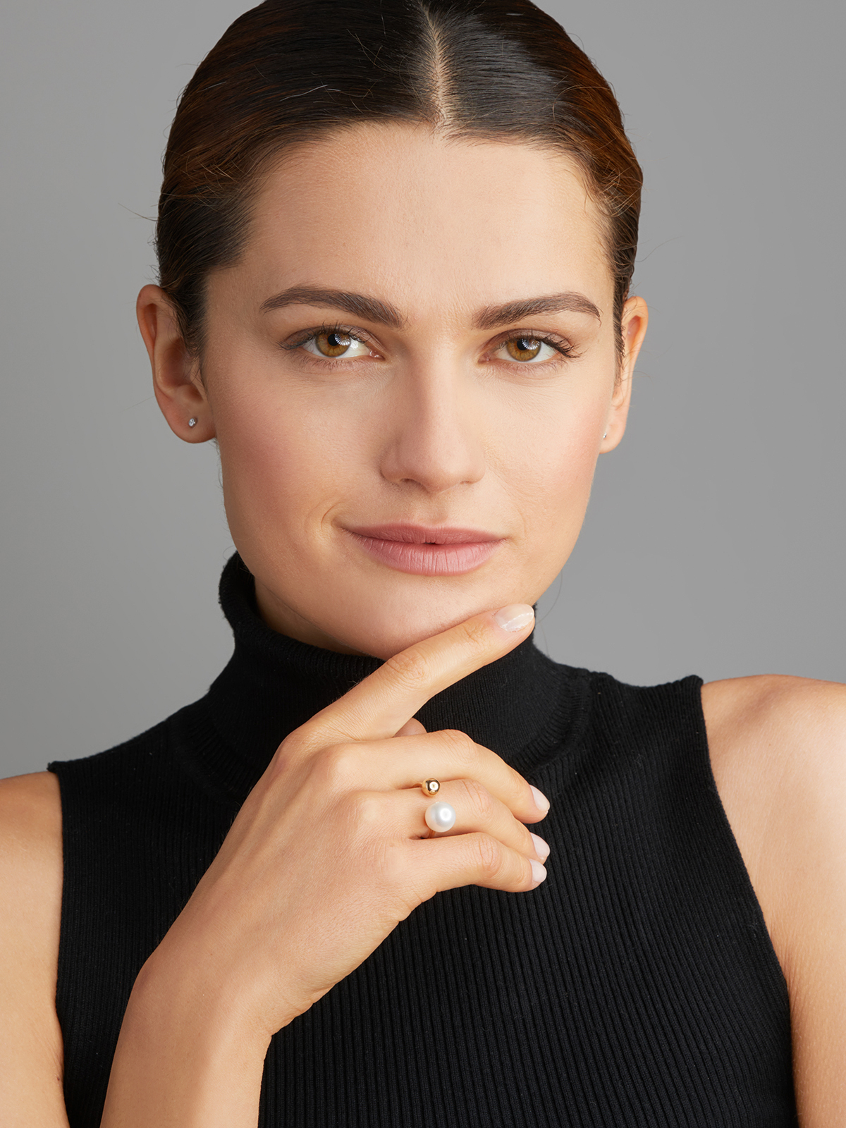 Yana Nesper Offener Gelbgoldring mit Süßwasserperle Open Mind